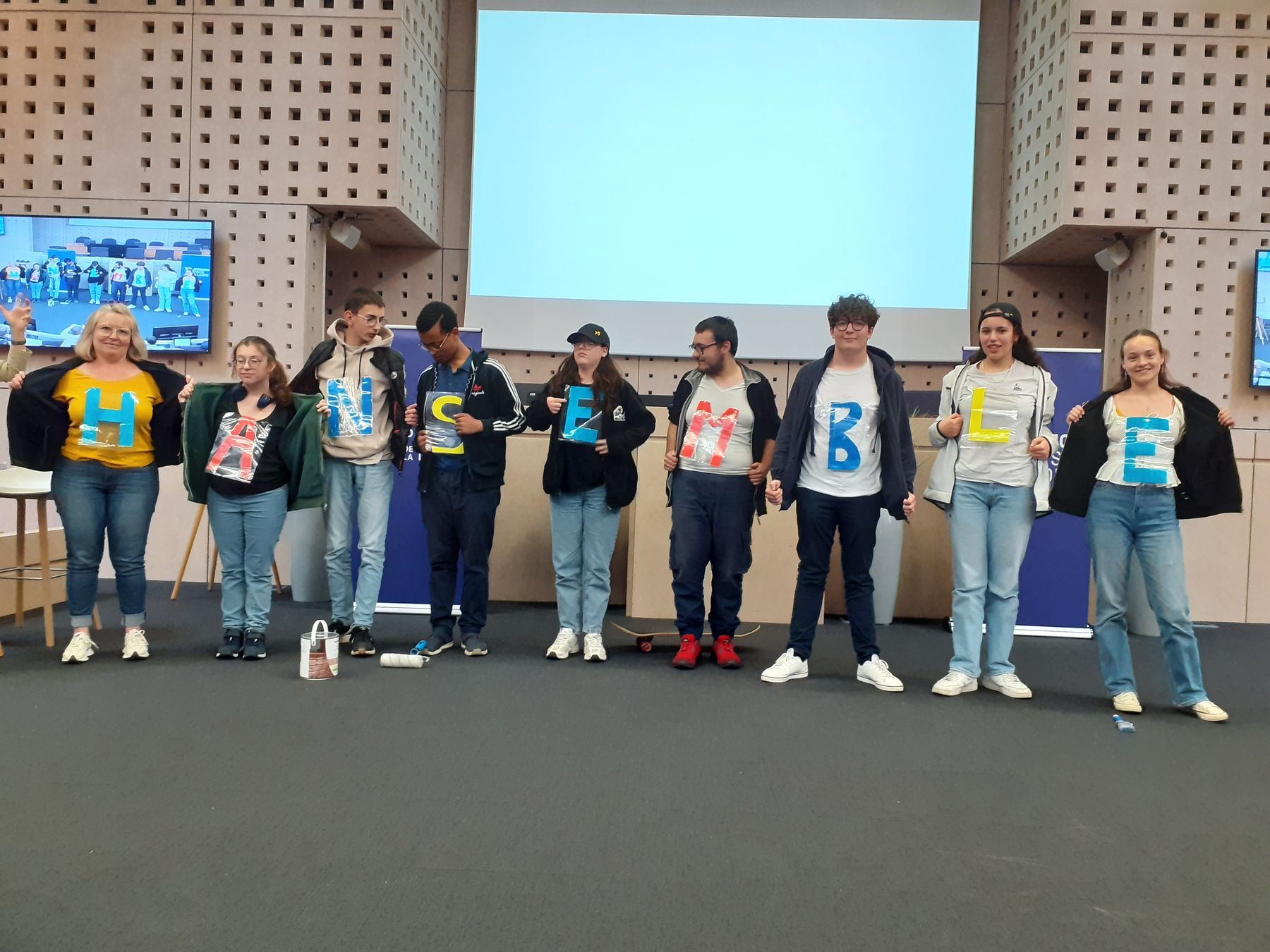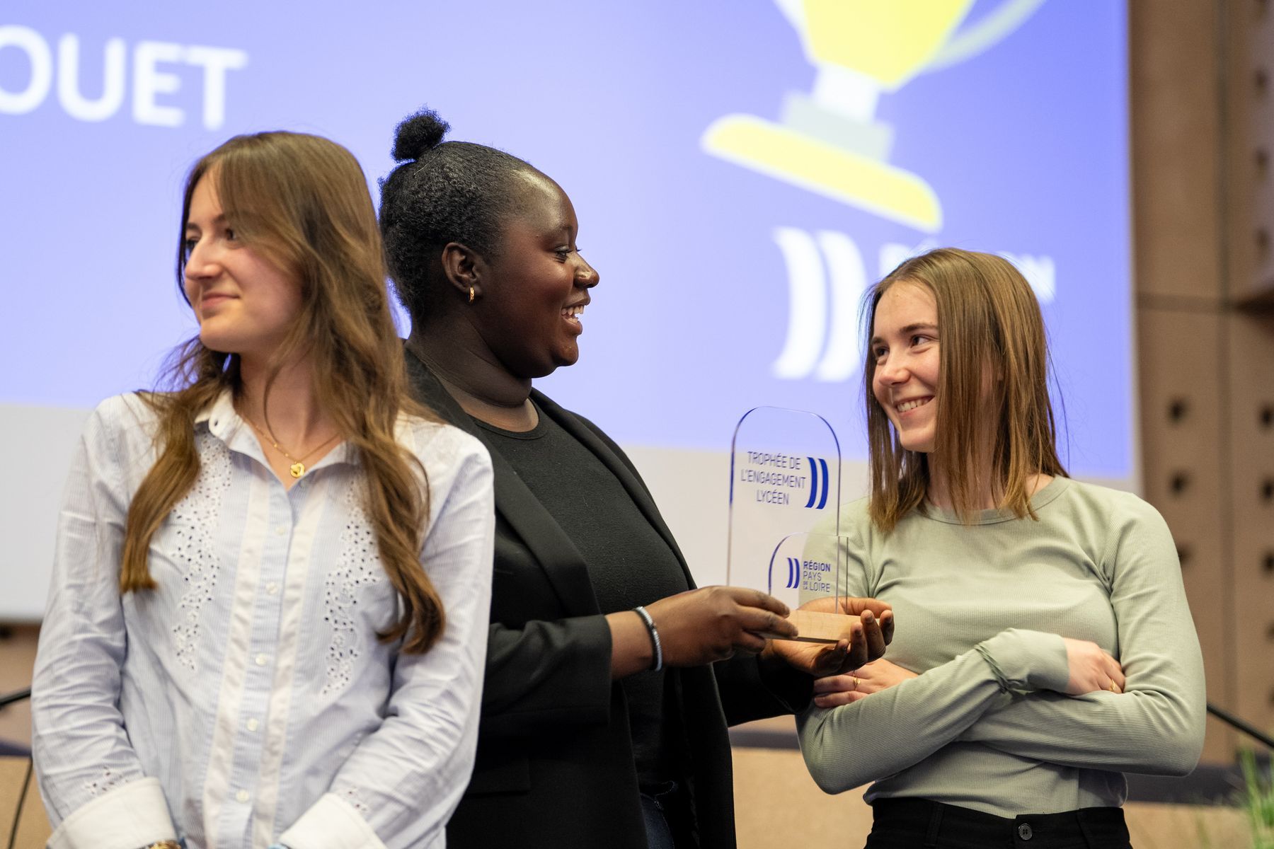 En mai dernier, à l’Hôtel de Région, Béatrice Annereau, conseillère régionale spéciale au handicap, Sandra Impériale, vice-présidente, déléguée à la Jeunesse et Fabien Héraud, acteur, militant et référent sensibilisation au handicap, ont remis 6 Trophées valorisant des projets lycéens sur la thématique « Jumelages et Handicap ».   Cette deuxième édition des Trophées de l’engagement lycéen, a réuni dans l’hémicycle 120 lycéens représentants les 486 jeunes ayant contribués aux projets. En groupe, ils ont présenté leurs projets sous la forme d’un pitch de 4 minutes et d’un support visuel réalisé par leurs soins (diaporama, film…). Fabien Héraud, grand témoin, a accompagné les lycéens tout au long de l’après-midi. 6 trophées ont été décernés pour récompenser les 3 projets coup de cœur des jeunes (1 trophée pour l’établissement scolaire et 1 trophée pour l’établissement scolaire spécialisé qui a travaillé sur le même projet).