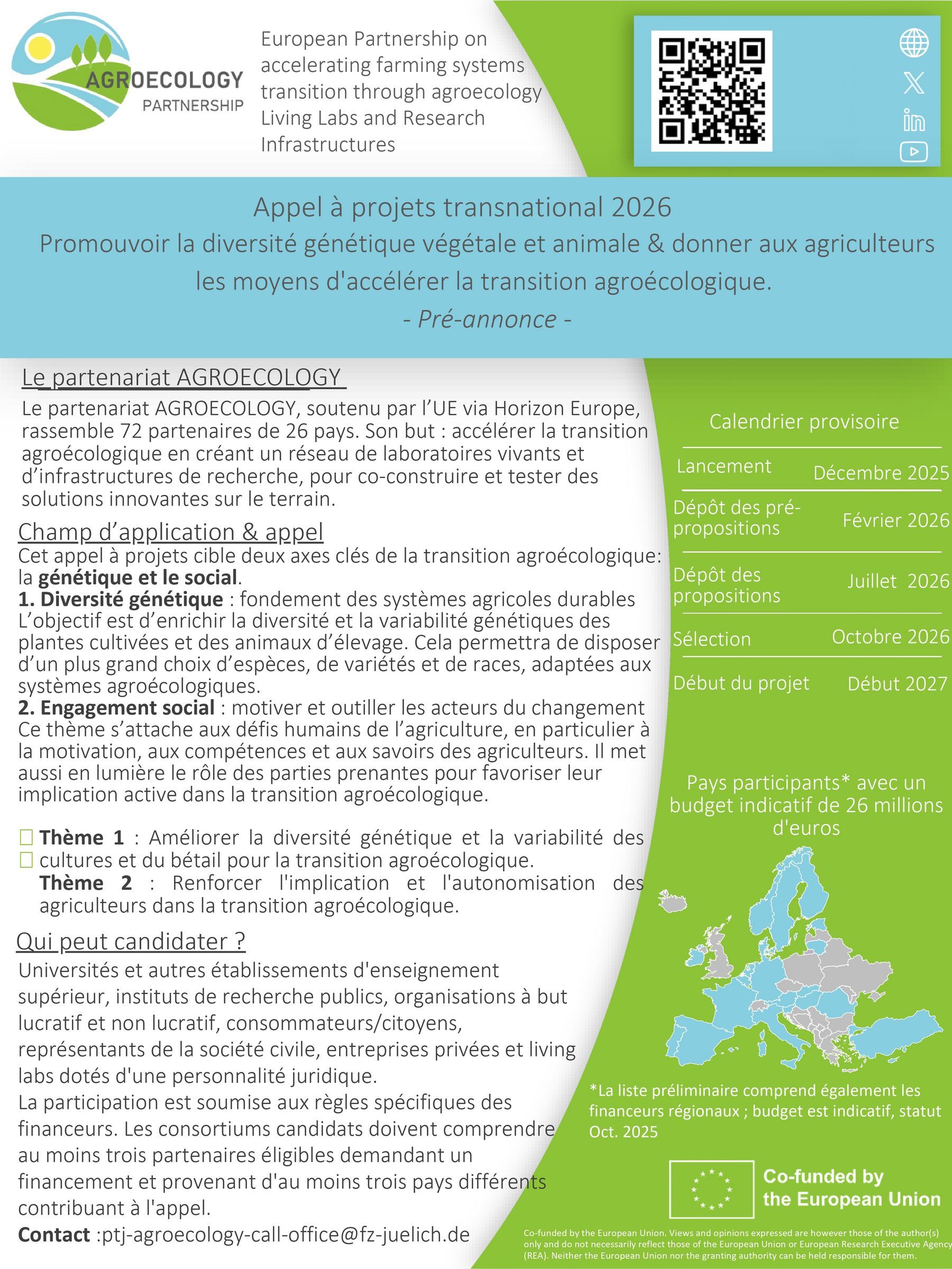 Soumission d’une pré-proposition : 18 février 2026, 14:00 CET.
